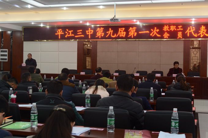 在多方积极筹备之下,平江三中隆重召开第九届教职工代表大会第一次会议正式会议。3月10日上午9时,平江县教育体育工会主席李祯祥、副主席张巧军,平江三中校长邓焕发等与41位职代会正式代表以及4位特邀、列席代表齐聚学校教师会议厅,共同回顾、总结2016年的工作经验,并发挥主人翁的民主监督作用,为今后学校的持续健康发展建言献策,做出科学谋划。