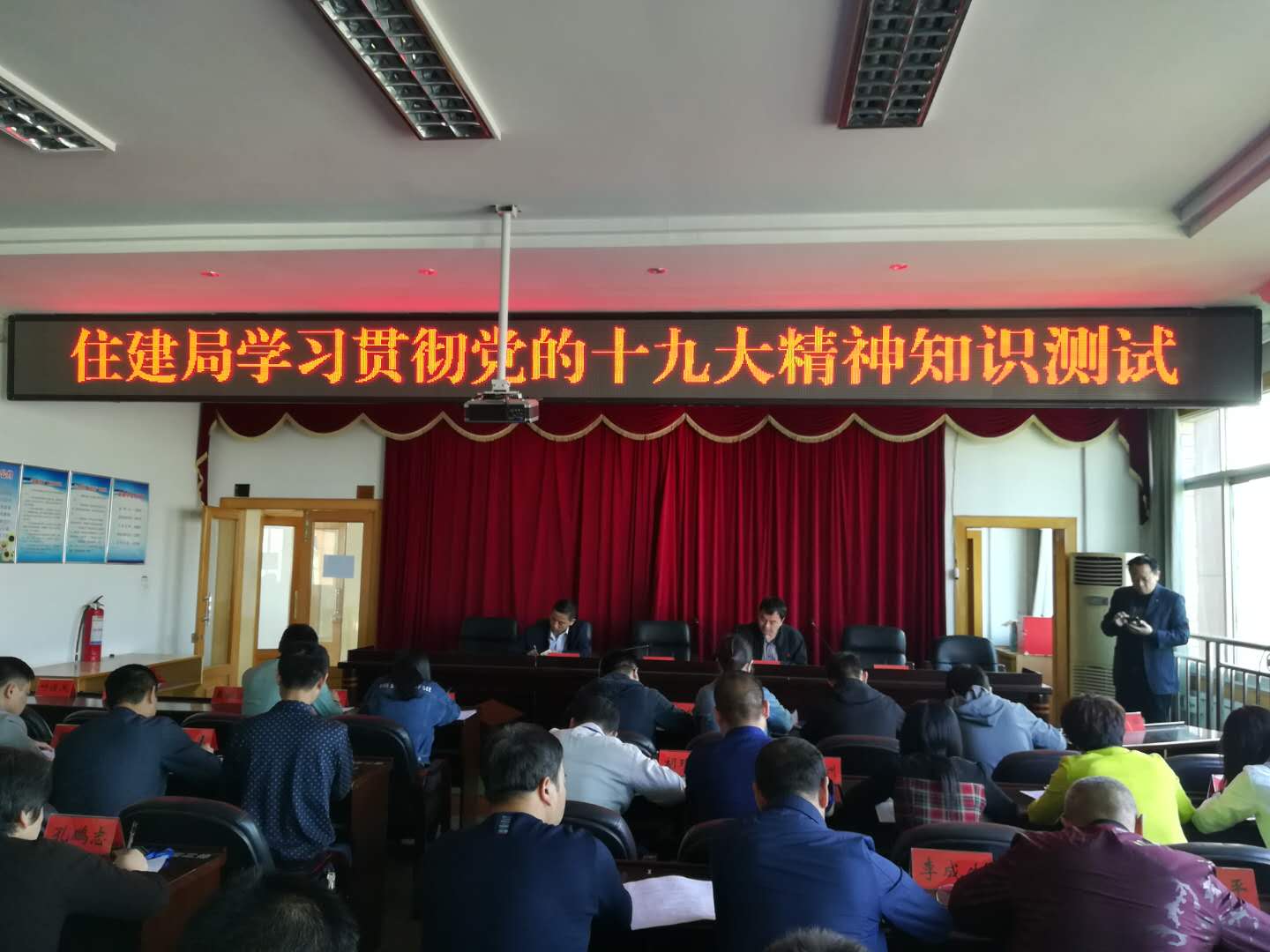 为及时掌握干部职工学习领会党的十九大精神情况,进一步督促大家学深悟透党的十九大精神。4月19日上午,住建局组织开展了党的十九大精神知识测试。全体机关干部职工、站办股室(队)负责人100多人参加。