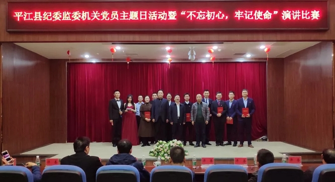 为纪念纪检机关恢复重建四十周年,11月29日下午,县纪委监委举行机关党员主题日活动暨“不忘初心、牢记使命”演讲比赛,县委常委、县纪委书记、监委主任向风行及县纪委监委班子成员出席活动并为获奖选手颁奖。来自4个党支部的9位参赛者经过激烈的角逐,熊斌获得演讲比赛一等奖,张冰、苏丫玉获得二等奖,何志伟、邹武卫、苏增群获得三等奖。