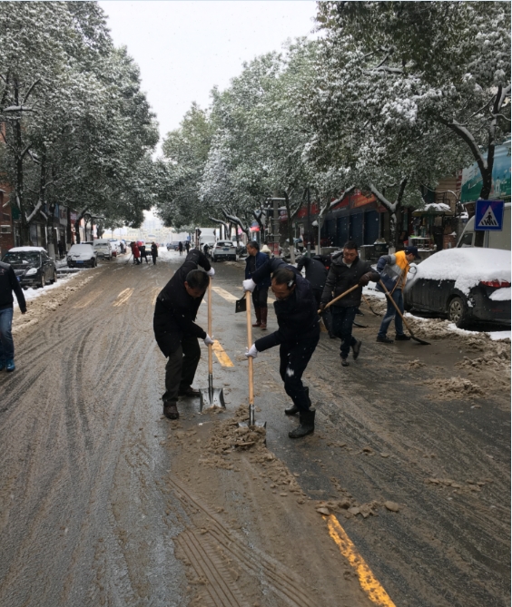 在县委、县政府的号召下,县统计局党组书记吴改良,局长朱平洋以及全体班子成员带领局机关干部职工,迎着凛冽的寒风走上街头,在平江大桥至老汽车站路段进行扫雪除冰。经过四个小时的奋战,为群众出行清扫出一条平安之路。