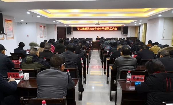 为全面总结2018年工作,确保新一年工作早谋划、早行动、早见效,1月7日,平江高新区召开2019年全体干部职工大会,进一步提神醒脑、凝神聚力。