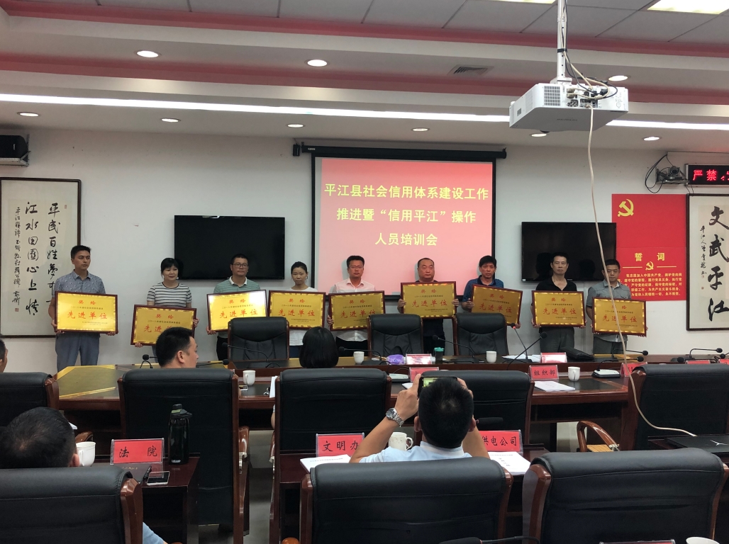 8月6日上午,平江县社会信用体系建设领导小组办公室主持召开全县社会信用体系建设工作推进会暨“信用平江”操作人员培训会。会议传达了省、市关于社会信用体系建设的有关要求,总结全县社会信用体系建设工作开展情况,安排部署下阶段重点工作。并对2018年度社会信用体系建设工作10家先进单位和20名先进个人进行了表彰。