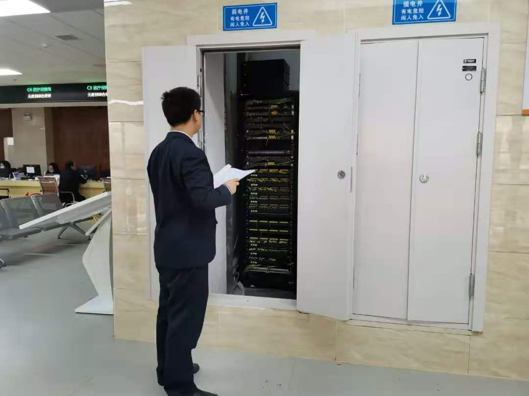 在大厅的设施设备中,信息化设备是智慧政务大厅稳定运行的坚实基础,一到四层的信息化设备使用频率最高。工作人员首先对刷脸签到机、自助样表机、叫号信息发布屏、自助服务一体机以及整楼各层的网络设备情况进行逐个检测维护,并将检查情况详细记录。