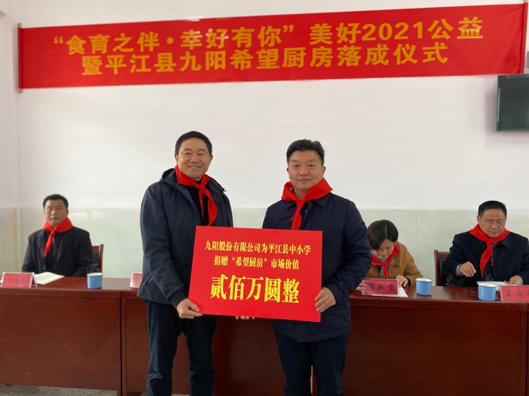 据了解,九阳希望厨房公益行援建活动一直秉承“1+2”捐赠原则。“1”指的是,按国家营养标准,学生成长需求配备最好的,最先进的厨房设备;“2”指的是,援建活动不能一捐了之,该公司对援建学校坚持每年进行定期和不定期回访。每年回访时,九阳公司携志愿者给孩子带来一堂食育教育课和一种劳动操作技术。10年来,九阳公司共为全国1000所乡村学校捐赠“希望厨房”,其中为平江36所学校捐赠了希望厨房,总价值逾200万元。