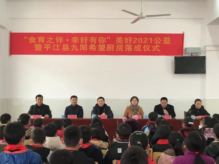 当日,平江县九阳希望厨房落成仪式在该校举行。九阳股份有限公司联合创始人、监事会主席朱宏韬,副县长潘如意,县政府办副主任王永祥,县教育局党组书记、局长刘日新等出席落成仪式,并和孩子们共享食育教育课,一同包饺子,欢喜过新年。