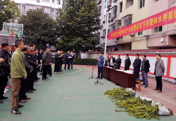 3月15日,县林业局在长寿镇政府举行2021年度林业产业扶贫送苗下乡暨林木种苗执法启动仪式。现场为脱贫群众讲解油茶栽培、丰产技术,宣讲林木种苗法律法规知识。市林业局副局长杨大成出席并讲话。长寿镇政府相关负责同志参加。