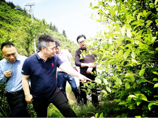 在德字村,胡胜春一行实地察看了该村试验林场的油茶林和巨雄公司在该村建立的油茶示范基地。在随后召开的座谈会上,胡胜春一行与镇村干部亲切交谈,详细了解了该村产业的生产经营状况,油茶产业发展情况及未来规划,并针对该村的实际情况提出了指导性意见和建议。
