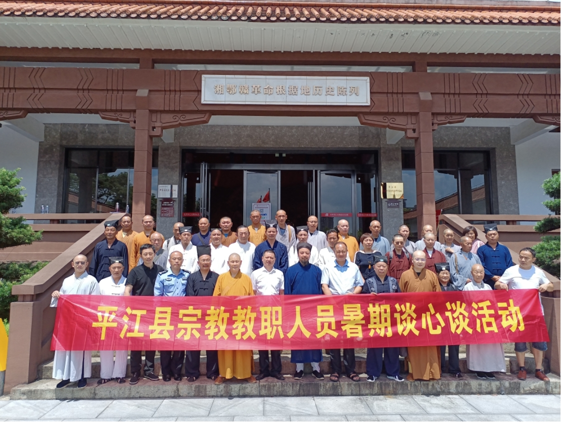 县委统战部副部长、县工商联党组书记、民宗局局长喻东发就宗教界开展“学四史、讲三爱、争五好”主题教育活动进行了安排部署。一方面,通过党史学习教育,引导宗教界人士重点学好习近平总书记在党史学习教育动员大会上的重要讲话和相关学习读本。并利用平江革命老区历史资源,开展现场教学和红色教育活动,正确认识党情国情,深化对党的领导的信念、对中国特色社会主义的信心。另一方面,大力弘扬宗教界人士爱党爱国爱社会主义的“三爱”优秀传统,大力宣传宗教界人士与党同心同行的红色故事。不断提升宗教教职人员的综合素质,将宗教活动场所作为中华优秀文化传承基地创建,从“三爱”主题教育中汲取精神力量,争当“五好”教职人员。同时,结合开展“国好·法大”学习教育活动、暑期谈心活动等,进一步加强宗教团体建设和教职人员自身建设,使宗教界人士进一步做到学史明理、学史增信、学史崇德、学史力行,进一步增强“五个认同”、“四个意识”、坚定“四个自信”、做到“两个维护”,以优异成绩为建党100周年献礼。