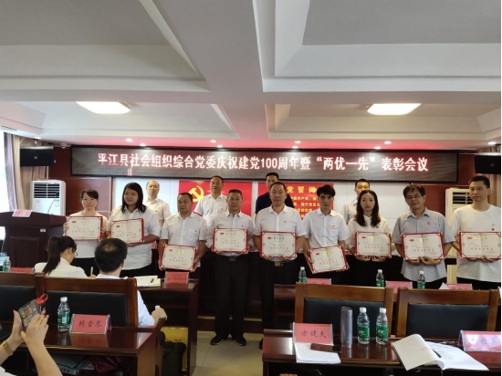 近日,平江县社会组织综合党委在县民政局三楼大型会议室召开庆祝建党100周年暨“两优一先”表彰会议。会议由县民政局社会组织办主任陈韬主持,县民政局在家班子成员、社会组织综合党委全体委员、部分社会组织党支部书记和党员代表共计50余人参加。