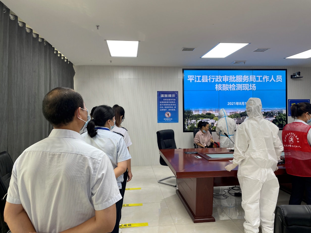 核酸检测“查一查”。为加强全体工作人员健康监测,8月11日下午,该局组织机关和大厅工作人员(含导服、保洁、保安等)开展集中核酸检测,当天有300名工作人员完成核酸检测标本采集,后期还将根据实际情况适时组织检测。截至目前,核酸结果已全部出来,300人检测结果均为阴性。