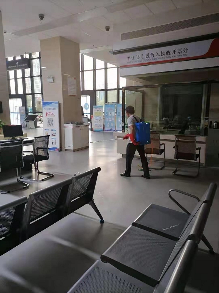 环境卫生“清一清”。近期,该局发布了暂停“5+2”无休日服务的通告,利用周末对办公场所进行全面封闭消毒杀菌。同时,严格执行政务大厅消毒防控措施,工作日期间,由保洁人员每天上午、下午对1—7楼公共区域(大厅、扶手、厕所等)各进行一次消毒,电梯做到“一日四次”擦拭消毒,并做好消毒记录。