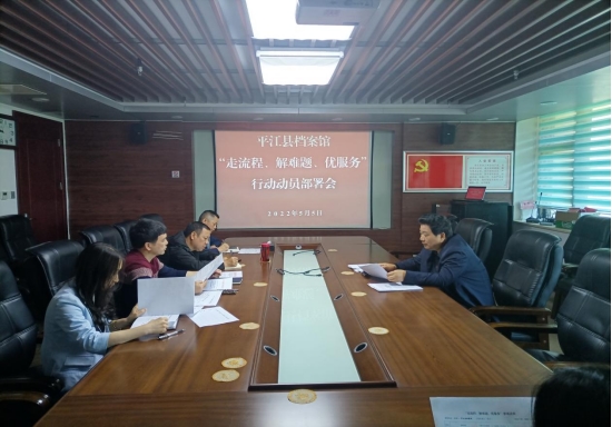 5月5日上午,县档案馆组织召开“走流程、解难题、优服务”行动动员部署会。党组书记、馆长段曙光组织全体班子成员及责任股室负责人传达学习了上级党委、政府关于开展“走流程、解难题、优服务”行动的系列文件和会议精神,根据我县工作部署,从实际出发制订了行动计划和事项清单,重点围绕建设项目(工程)档案验收事项办理,组成以班子成员为组长的四个工作组,采取分组逐项跟进、主动对接、上门服务的方式,全程跟流程,全力解难题,全心优服务。