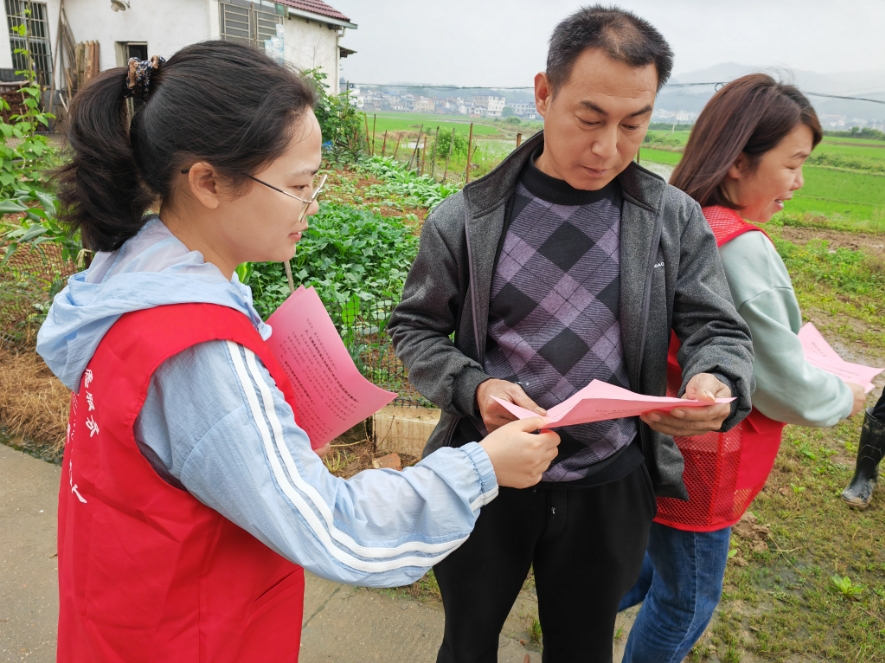 活动现场,志愿者们首先挨家挨户向村民发放化肥农药减量宣传及绿色防控技术资料,并现场进行简明的介绍讲解。