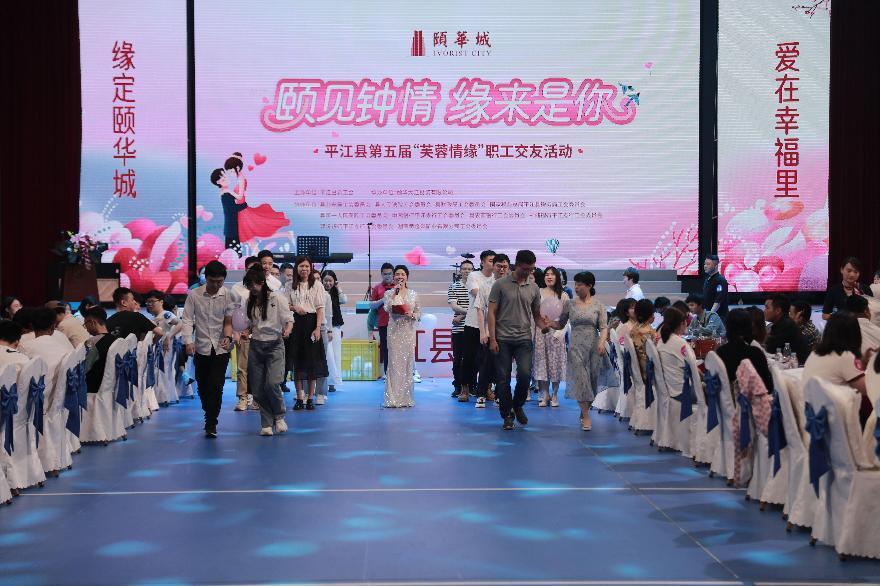月上柳梢头,人约“黄昏”后。5月29日晚,湖南师大附属颐华学校体育馆内灯火辉煌、流光溢彩,呈现出一派热烈喜气的浪漫氛围。由县总工会主办,颐华大江投资有限公司承办,县公安局工会委员会、县财政局工会委员会等十家单位协办的“颐见钟情·缘来是你”平江县第五届“芙蓉情缘”职工交友活动在这里温情上演。