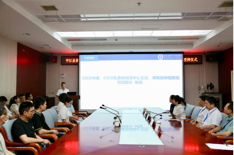 6月14日上午,CSCO乳腺癌规范化诊疗实践中心授牌仪式在县第一人民医院门诊五楼一会议室举行。湖南省肿瘤医院教授欧阳取长代表中国临床肿瘤学会(CSCO)乳腺癌专家委员会向该院授牌。院党委书记柳海鸣、院务委员李征、李春海以及相关临床及职能部门负责人参加授牌仪式。仪式由医务部副部长方昱煜主持。