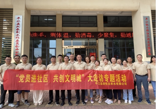 为认真落实县委书记李勇在新时代文明实践站讲话精神,提高人民群众对创文知晓率、满意率,提升文明素质,营造浓厚创文氛围,7月14日至15日,县润恒自来水有限公司组织32名党员到该公司宿舍开展“党员进社区 共创文明城”大走访专题活动。