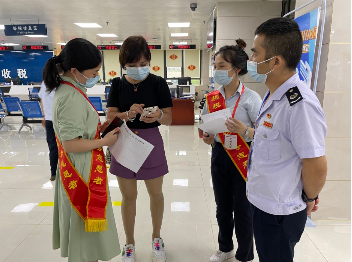 活动过程中,在窗口,退税专干为各位体验师们详细讲解了增值税留抵退税、出口退税的最新政策及办理流程;在填单区,体验师们运用自己的专业知识辅导纳税人填写各类申报表;在自助办税区,体验师们第一次转换身份与大厅工作人员一起辅导其他纳税人办理票种核定、发票领用、代开发票、税务登记及注销五种基本业务,多种业务、多个维度感受便民办税流程。
