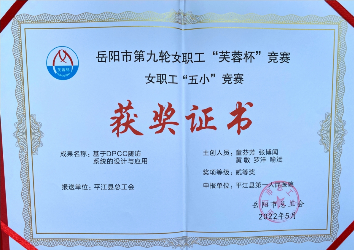 该院内分泌科团队的获奖作品是“基于DPCC随访系统的设计与应用”。该系统实现了患者电子健康信息一人一档、双向转诊、连续记录、动态更新、共享共用等功能;同时实现了县级医院和乡镇卫生院诊疗流程的同质化,县域内所有医院的系统数据在后台终端上实时更新,能及时掌握平江地区各医院患者就诊、随访、转诊及病情轻重等情况,做到了县域对糖尿病患者的精准把控。