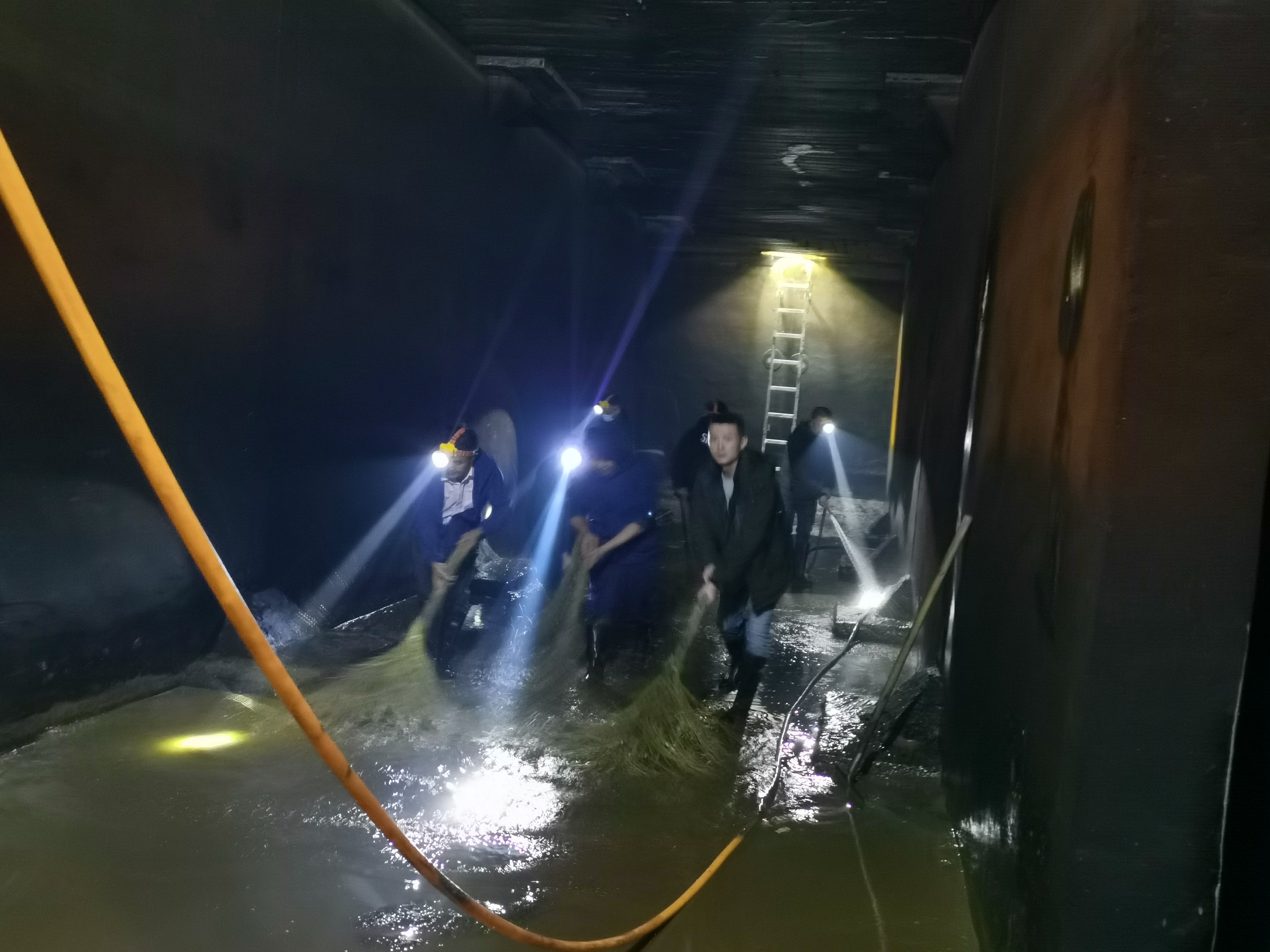 为了做好本次清洗工作,县润恒自来水有限公司提前制定了《不间断供水的调度方案及清洗消毒方案》,从相关部门抽调青年职工22人,分成两组进行清洗。由于清水池面积大、全封闭、无灯光,且又逢下雨、气温骤降,给清洗工作带来很大难度。但所有清洗人员克服困难,配合默契,除泥、刮垢、抽水、清刷、冲洗……,每个步骤、每个细节都有条不紊地进行,确保清水池清洗不留死角,浑身被水浸湿也全然不顾,经过4个多小时连续奋战,比预计时间提前2小时圆满完成了两个清水池的清洗工作。尔后,城乡供水水质检测中心技术人员对池内做了全面消毒处理,清水池恢复正常供水。