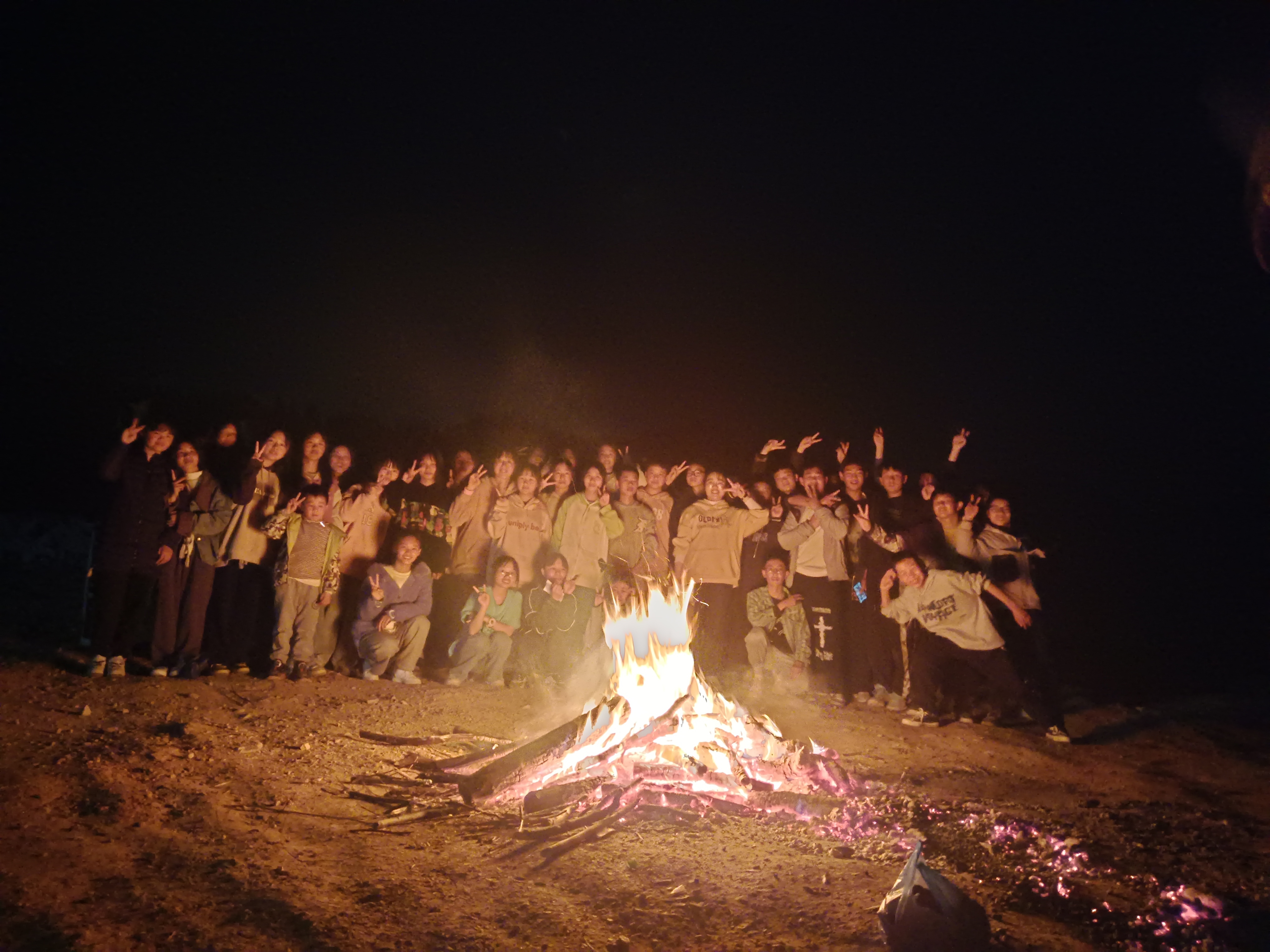 随着熊熊燃烧的篝火,大家的激情瞬间被点燃。学生、家长和老师手拉手围着篝火跳起了圆圈舞,在音乐和舞蹈的节奏中,他们忘却了烦恼,尽情地释放着快乐。随后开始玩萝卜蹲、健康操、数字抱团等小游戏,同学们或转圈或拍手或欢呼,沉浸在动感的音乐中,将整个晚会的气氛推向高潮。其中,最有趣的要属游戏失败接受惩罚的环节,失败的同学在老师准备的盒子里抽惩罚小纸条,有的同学抽到和校长共进晚餐,瞬间全场欢呼;还有的抽到第二天承包教室卫生一天,引发全场哄堂大笑。最后,在歌声与笑声中,月亮爬上山坡,晚会落下了帷幕。