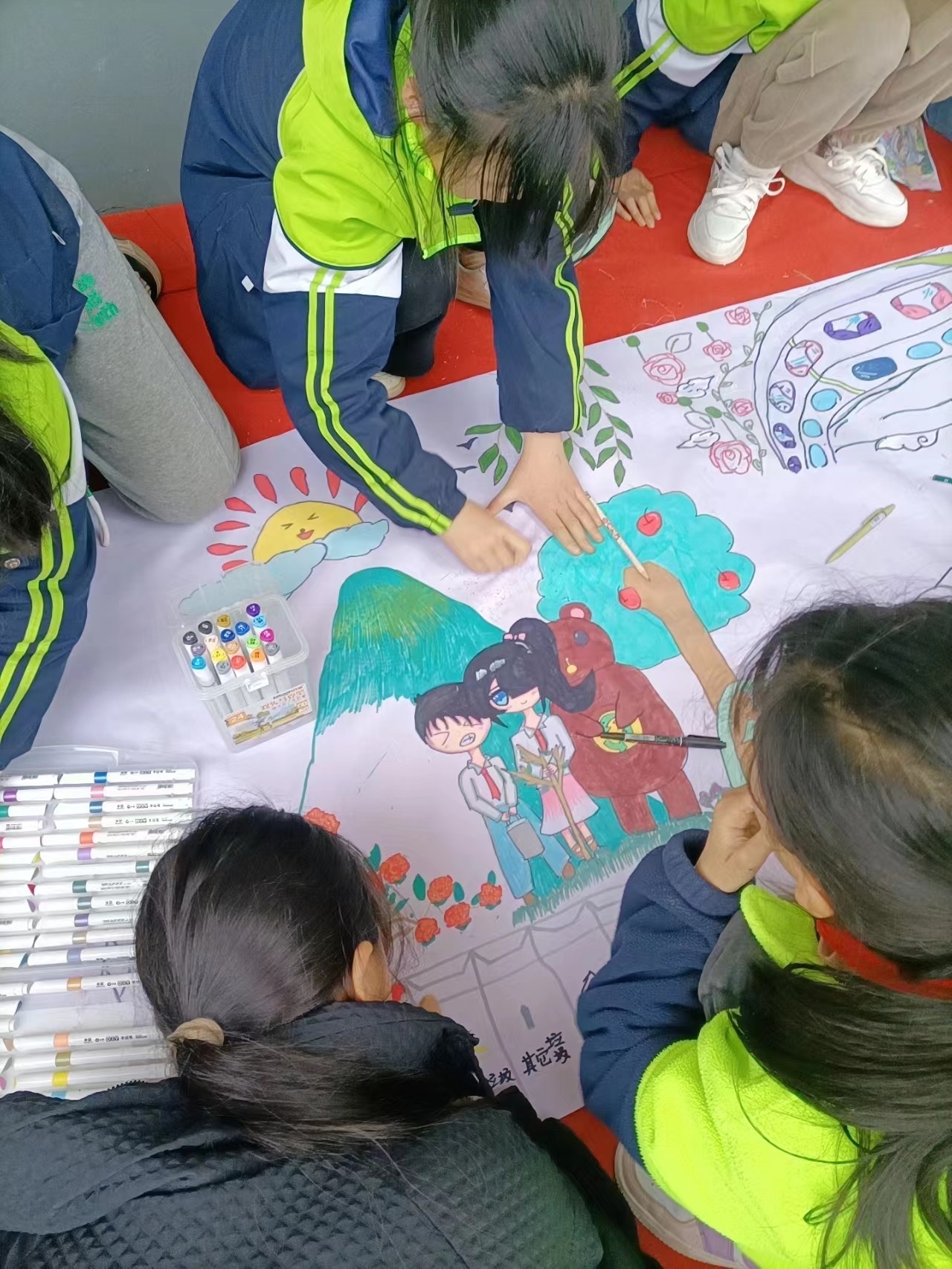 童心绘彩,践行环保。3月29日下午,木金乡中心小学学生秉承着环保宣传理念,精心设计十米长卷,巧绘绿水青山,为共建和谐家园增色添彩。