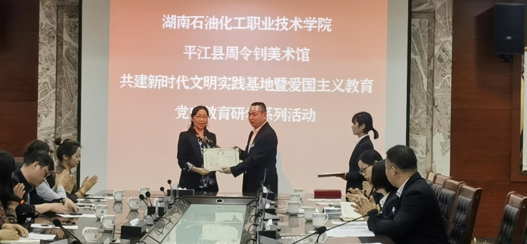 参加活动的53名湖南石油化工职业技术学院师生代表重点参观了周令钊美术馆的平江历史人文展、周令钊艺术成就展、平江籍开国将军档案史料展后,馆校双方开展了红色教育、馆藏资源分享交流活动。活动中,湖南石化职院党委副书记、纪委书记张彦宇做了第二批教育实践研学活动动员讲话;周令钊美术馆馆长谢滔宣读了24名实践教育基地新聘爱国主义宣讲员、党史教育宣教员的聘任文件并向相关同志现场授予了聘书;周令钊美术馆新时代文明实践志愿者讲述了平江红色故事“信仰胜于黄金--背着黄金乞讨十年的烈士遗孀朱引梅”,分享了平江革命史和平江党史的学习心得;湖南石化职院马克思学院院长姚霞组织开展了以“平江革命精神的内涵”“平江共产党人的奋斗史”为主要研学内容的交流活动。