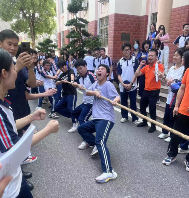 “团结拼搏,共赢高考”,校园综合楼前“加油”声音响彻云霄,拔河比赛劲爆进行,同学们心拧成一股绳,劲往一处使。大家分工协作,相互鼓励,口号声和助威声此起彼伏。他们尽情释放青春的激情,尽情感受青春的力量。