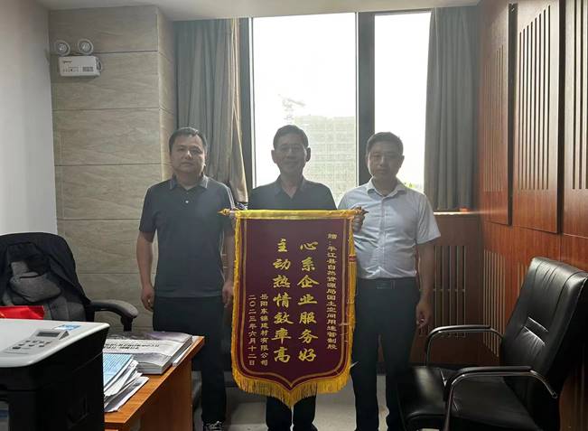 6月12日下午,政务中心自然资源局国土空间用途管制股收到办事企业赠送的锦旗,感谢其提供高效便捷服务。