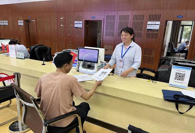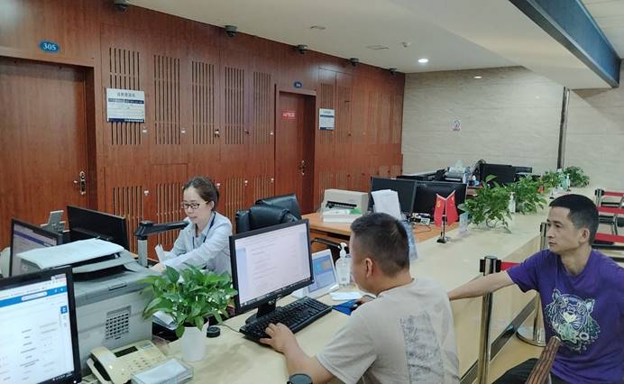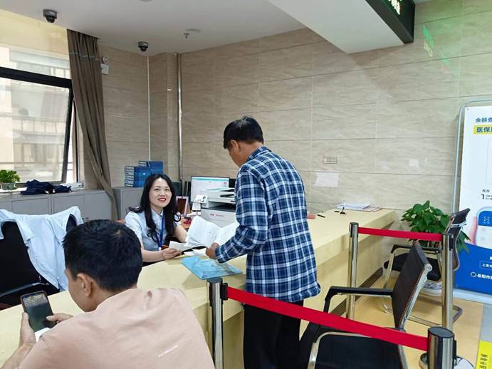 医保窗口黄圳君、民政窗口刘桂英为办事群众提供热情周到的微笑服务。