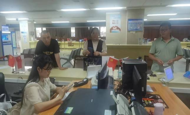 6月12日上午8点左右,不动产窗口洪霞、人社窗口童胡蓉提前到岗,为办事群众服务。