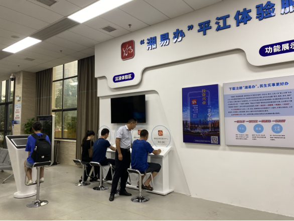 走进“湘易办”平江县体验服务中心,给人一种全新的体验。