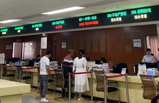 7月3日上午,不动产窗口洪霞提前为办事群众服务。