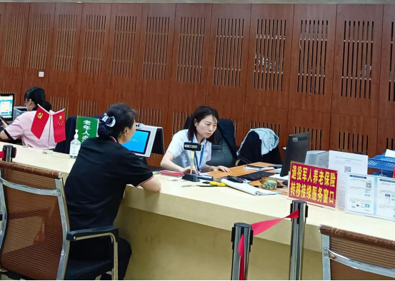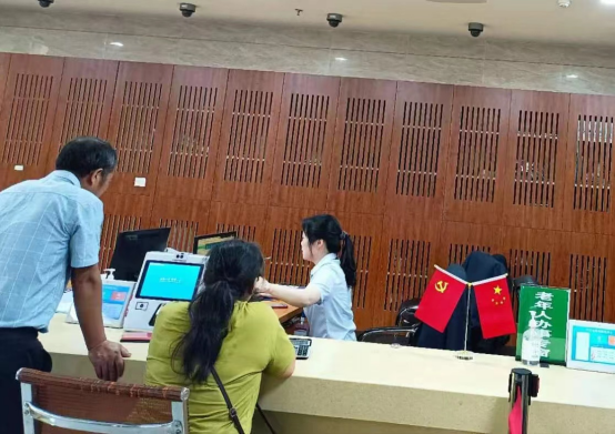 7月4日、5日上午,人社窗口代丽曼提前为办事群众服务。