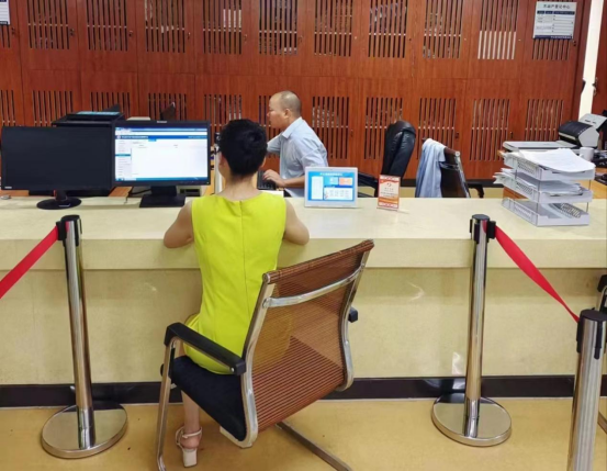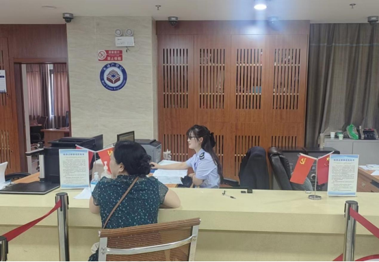 7月10日上午,税务窗口余想爱为办事群众提供延时服务。