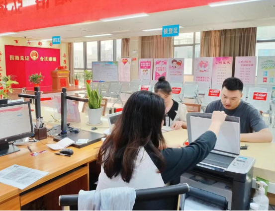 7月12日下午,婚姻登记窗口罗静为办事群众提供延时服务。
