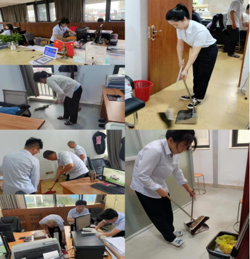 7月14日下午,政务大厅各窗口及后台办公室进行卫生大扫除活动。