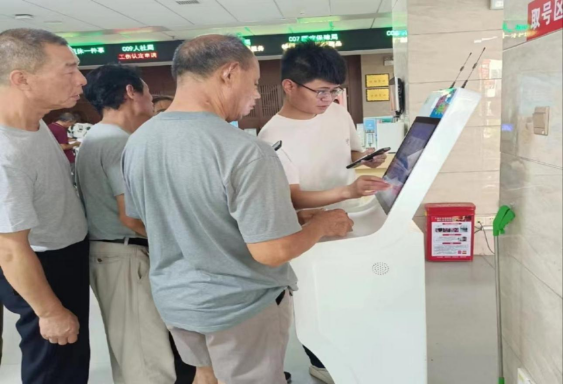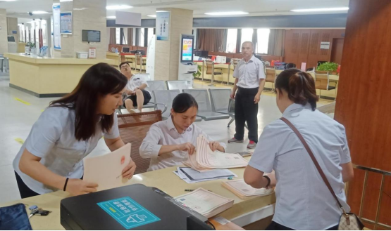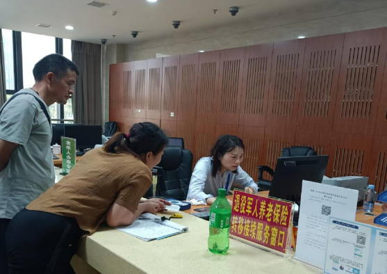 7月24日,人社窗口钟立新主动为办事群众提供咨询、取号服务。