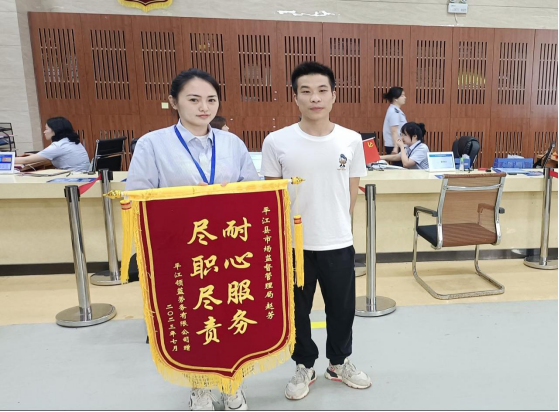 7月24日,市监窗口赵芳收到办事群众赠送锦旗,感谢其提供高效优质服务。