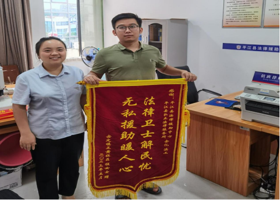 7月25日,司法局法援中心周碧霞收到办事群众赠送的锦旗,感谢其提供优质高效服务。