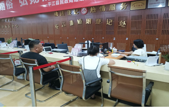 7月25日下午,婚姻登记窗口郑岚辉为办事群众提供延时服务。