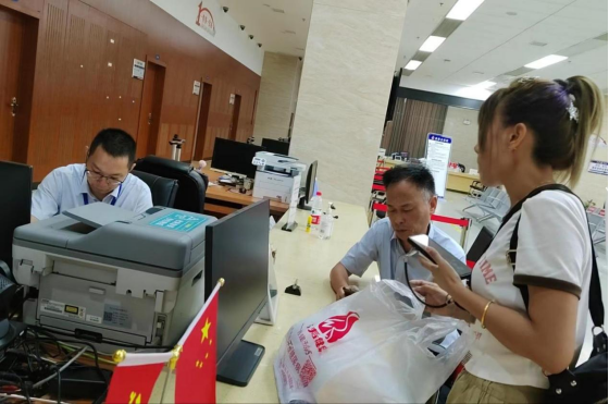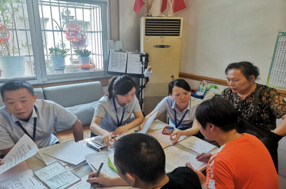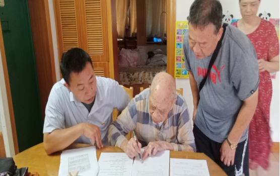 7月27日下午,不动产中心窗口尹朝见、黄大志前往岳阳为行动不便的老人提供上门补正服务。