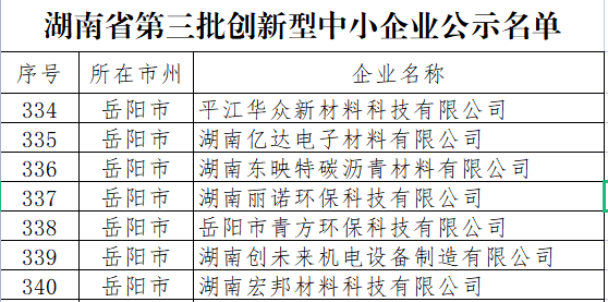 8月16日,湖南省工业和信息化厅发布湖南省第三批创新型中小企业名单,平江高新区又有7家企业榜上有名。
