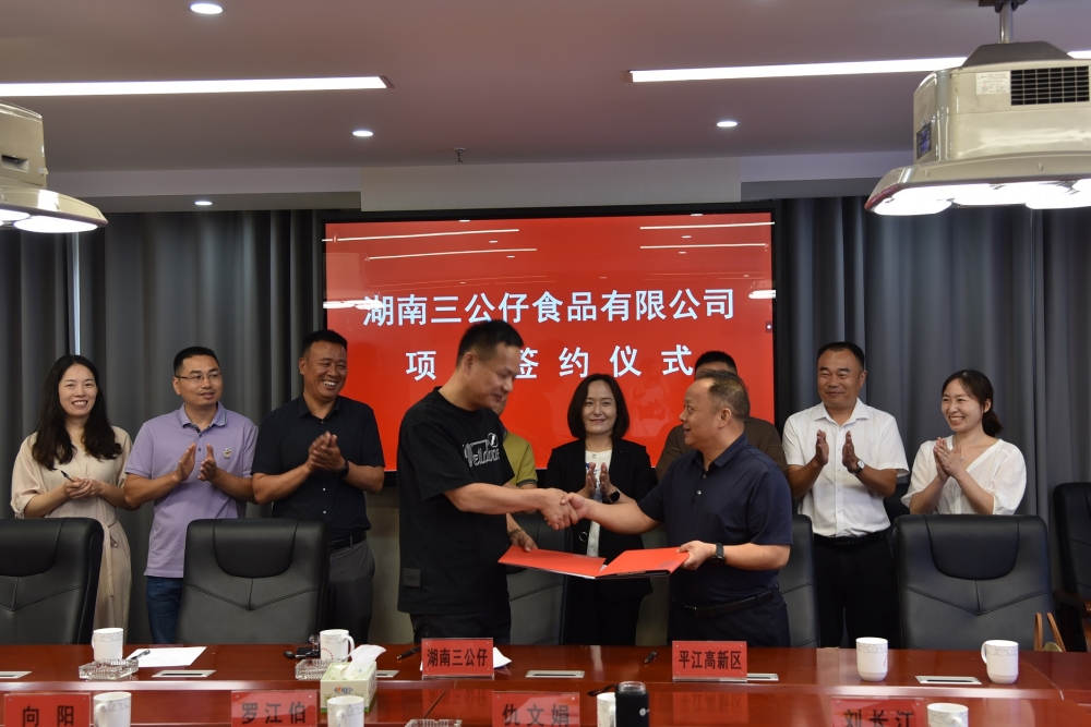 “去年6月份开始,平江高新区的工作人员多次到我们企业对接,能够感受到你们满满的诚意,我们也多次来到现场进行考察,经过多次接洽,被平江高新区良好的营商环境和优越的区位交通条件吸引,我们最终决定落户到平江高新区。”8月15日,湖南三公仔食品有限公司项目签约仪式在平江高新区管委会举行,签约仪式上,公司董事长李映辉对平江高新区的营商环境给予了高度评价。县委常委、副县长仇文娟,平江高新区党工委书记罗江伯,党工委副书记、管委会主任刘长江,党工委委员、副主任向阳等参加签约仪式。