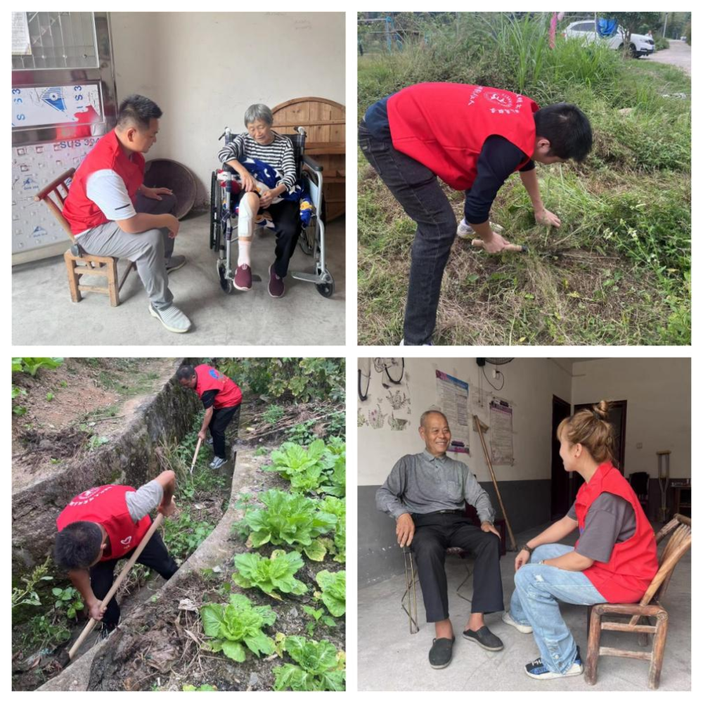 活动期间,志愿者们分工有序,有的拿上农具,在平安村安置点区域,帮忙铲除附近杂草、清理水沟垃圾;有的主动和慰问对象唠家常、问冷暖,详细了解他们的日常生活和身体状况,叮嘱天气渐凉,要注意保重身体。同时,还给慰问对象送上了节日的美好祝福和月饼等慰问品。