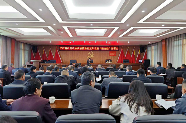会上,林业局林业有害生物防治中心主任胡满花解读了《平江县2023年度松材线虫病疫情防控实施方案》,并对下阶段防控工作进行了部署安排;副主任方兴详细讲解了疫木无害处理补贴流程;技术员张今对“线虫防控”APP使用进行操作演示;保险公司负责人讲解了集中除治期专业除治队员保险事项。