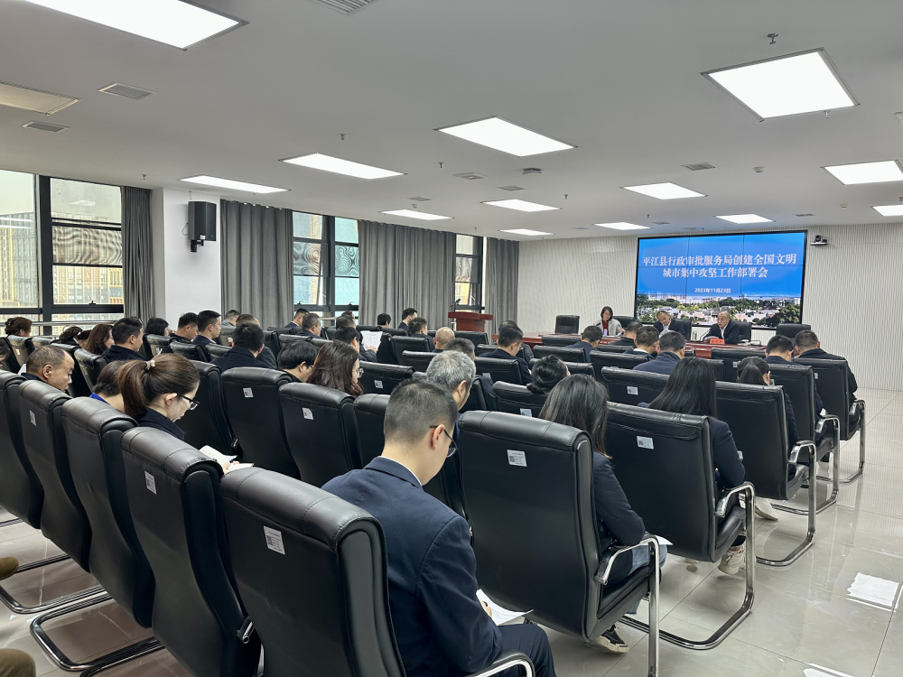 11月23日上午,县行政审批服务局召开全省城市文明程度指数测评工作推进会,瞄准高质量创建全国文明城市的目标,再部署、再动员、再提升。局全体班子成员、机关全体干部、进厅窗口负责人参加会议。