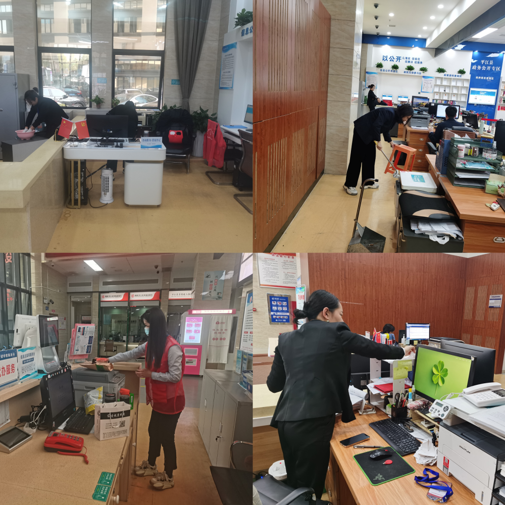 会后,各股室、窗口闻令而动,主动认领问题,积极进行整改,根据“三提升”要求,真正做到作风建设整治提升、环境卫生巩固提升、窗口形象攻坚提升;在常态化开展的“周五大扫除”行动中,各窗口行动迅速,清扫彻底,充分展示了政务服务队伍团结协作、奋勇担当的饱满状态。