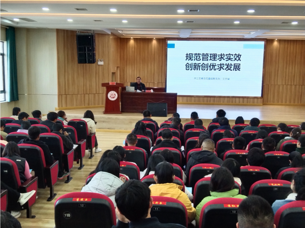县教育局相关负责人作题为《规范管理求实效 创新创优求发展》的专题讲座,对“德育含义”“德育渠道”“德育内容”“德育实施途径”等方面进行解读,围绕平江县德育工作体系和学生综合素质评价操作办法展开指导。