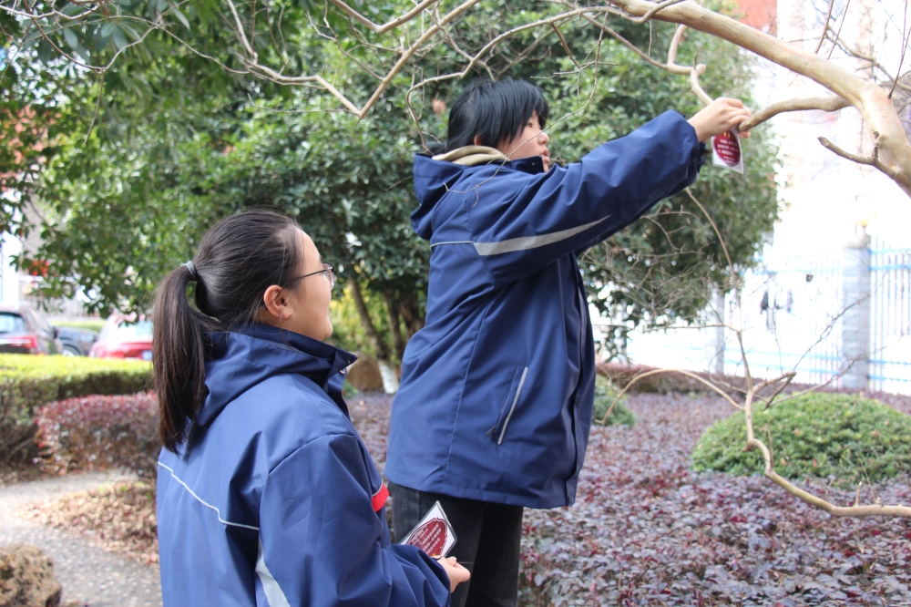 同学们以小主人的身份逐一给花卉树木挂上“身份证”。植物“身份证”注明科名和属名,标明主要的观赏价值,以及一些特别名称的由来,并标注“爱护花草树木 共建美好校园”字样,提醒大家时刻爱护环境、保护绿植。