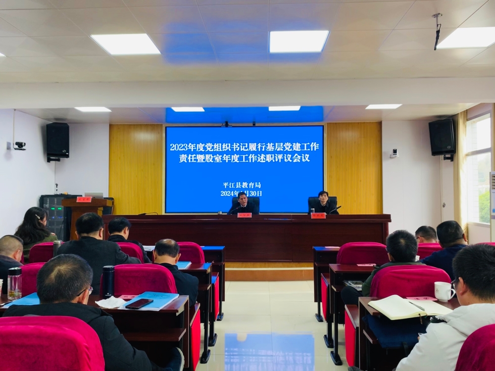1月30日,县教育局召开2023年度党组织书记履行基层党建工作责任暨股室年度工作述职评议会。县教育局全体机关干部,学区、县直学校党组织书记,局机关离退休干部代表与会。会议由县教育局党组副书记、副局长郑振庭主持。